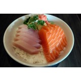 ingredients : tuna and salmon sashimi on top sushi rice